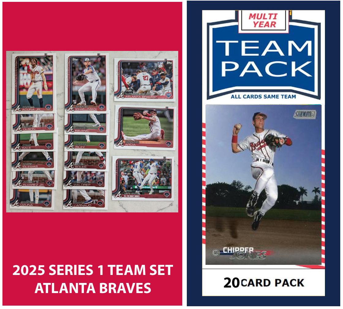 2024 Baseball Team Pack Braves 20 Card Pack Chipper Jones + 2025 Topps Series 1 Team Set - Acuna