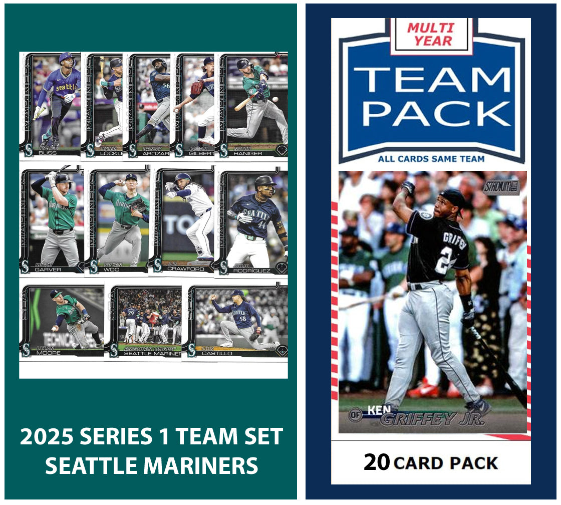 2024 Baseball Team Pack Mariners 20 Card Pack Ken Griffey Jr + 2025 Topps Series 1 Team Set - Julio Rodriguez