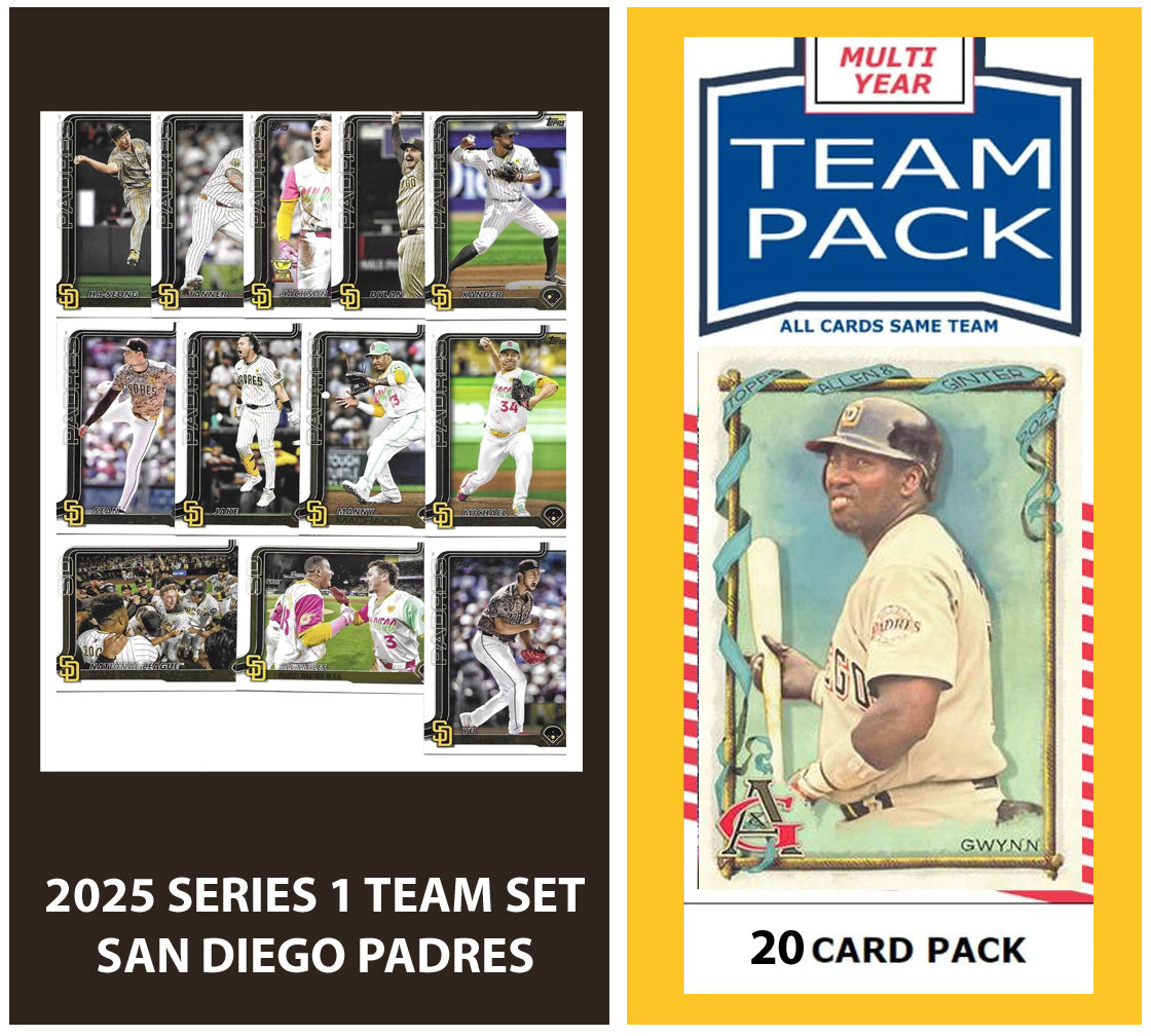 2024 Baseball Team Pack Padres 20 Card Pack Tony Gwynn + 2025 Topps Series 1 Team Set - Fernando Tatis Merrill